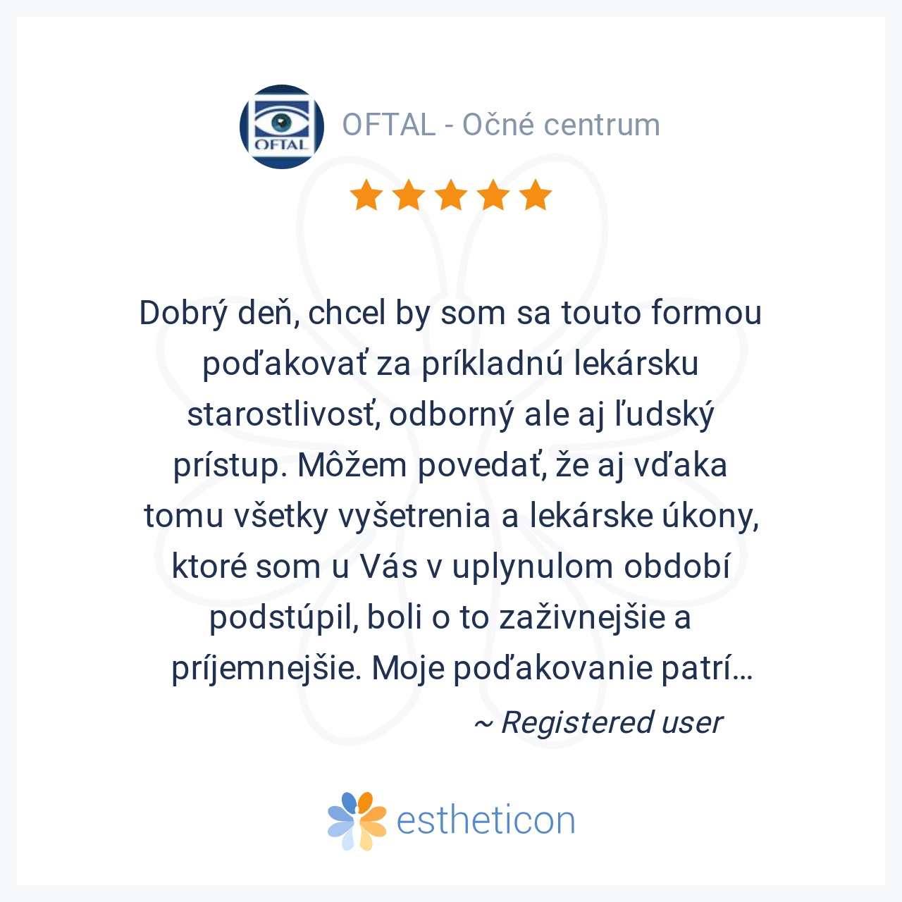 Máte osobnú skúsenosť s OFTAL - Očné centrum? Pomôžte záujemcom a napíšte o tom.