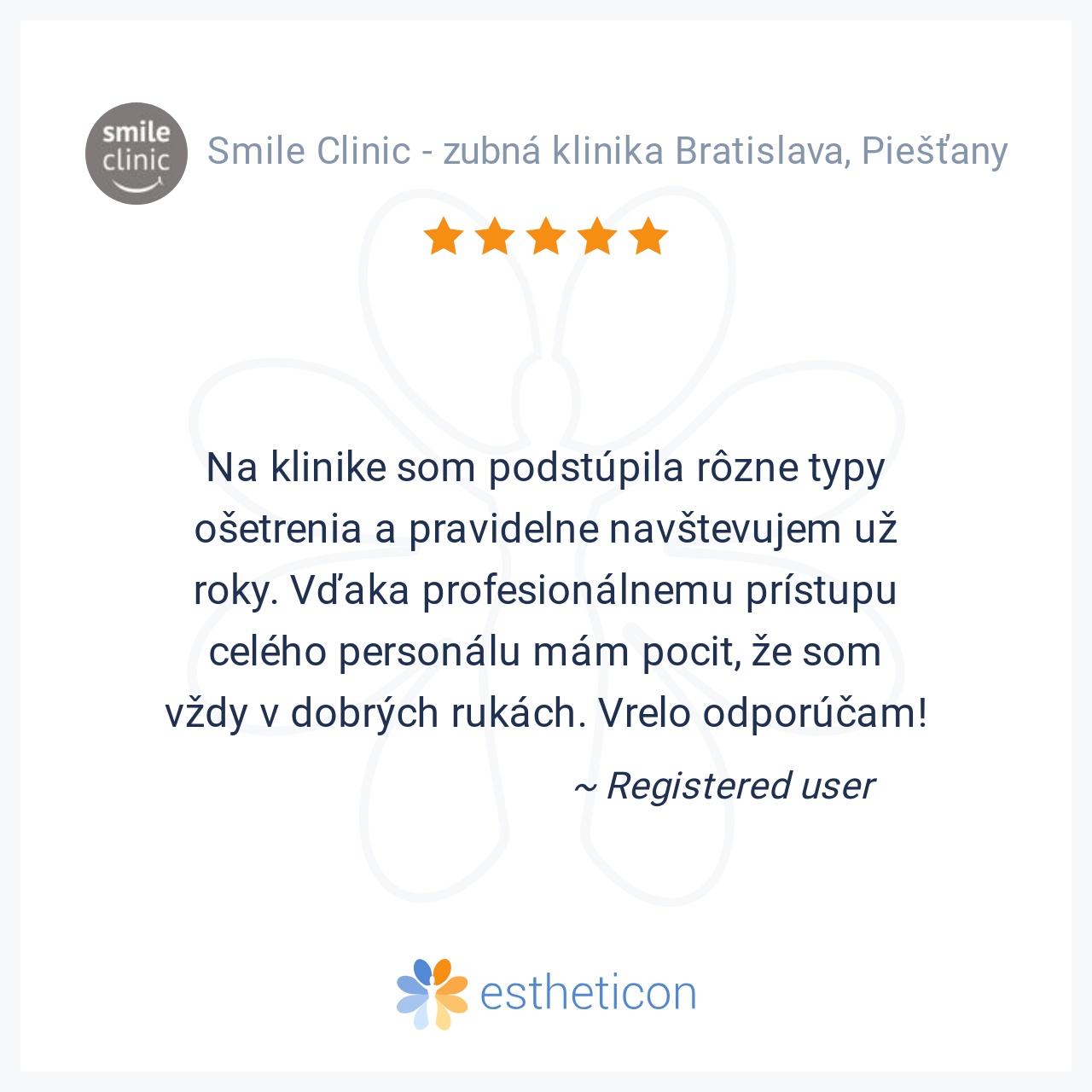 Smile Clinic vďaka svojim dlhoročným skúsenostiam dokáže pacientom vyrobiť úsmev šitý na mieru. Preto ku svojim pacientom pristupujeme individuálne a so všetkou profesionalitou. Najmodernejšie technologické vybavenie a vysokokvalifikovaný personál dovedie Vaše zuby k dokonalosti.