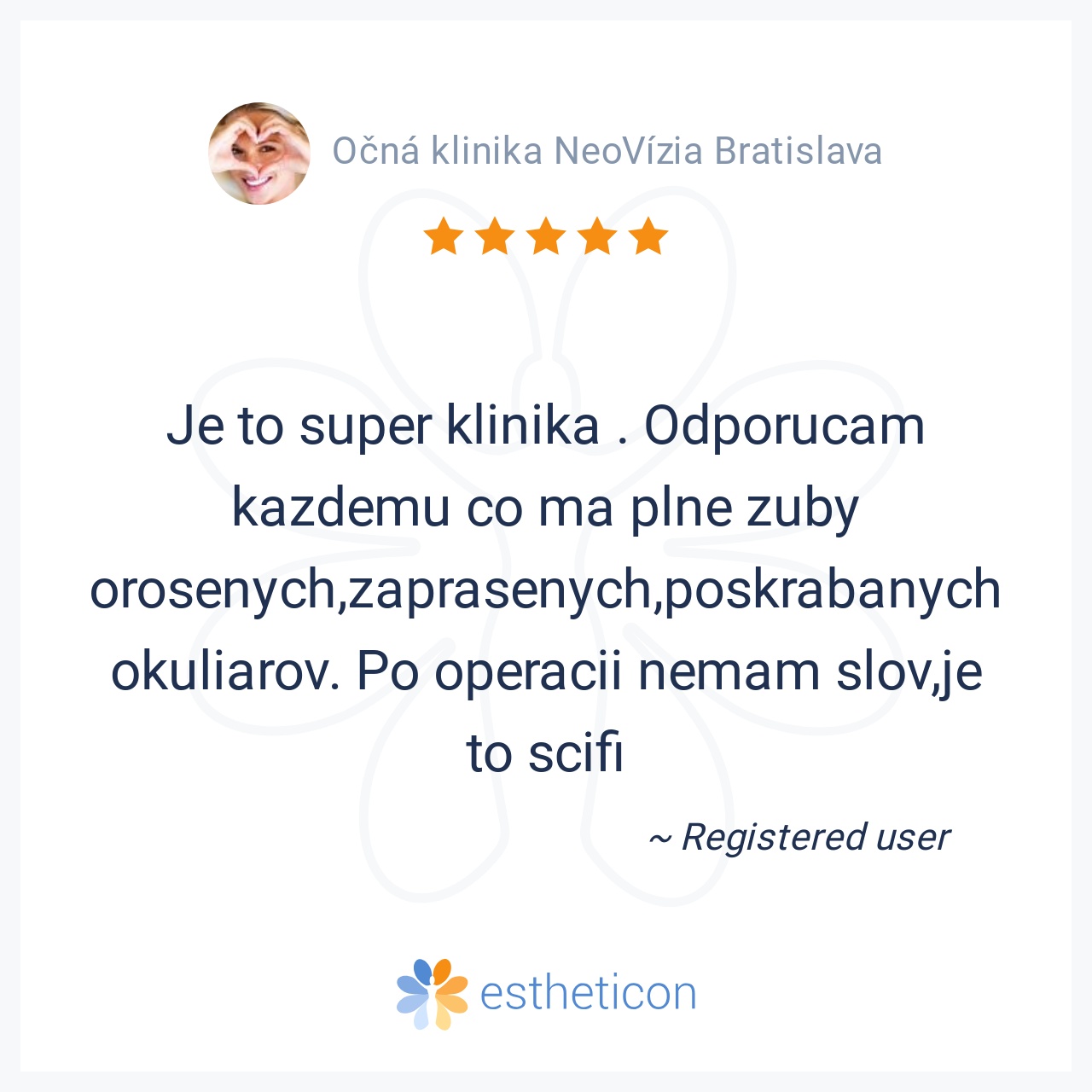 Je to super klinika . Odporucam kazdemu co ma plne zuby orosenych,zaprasenych,poskrabanych okuliarov. Po operacii nemam slov,je to scifi
