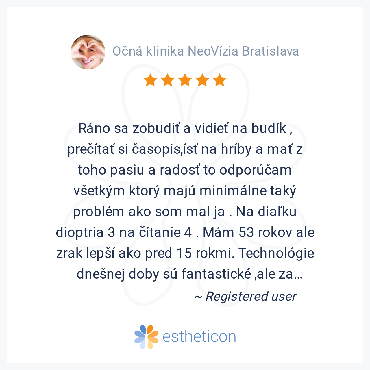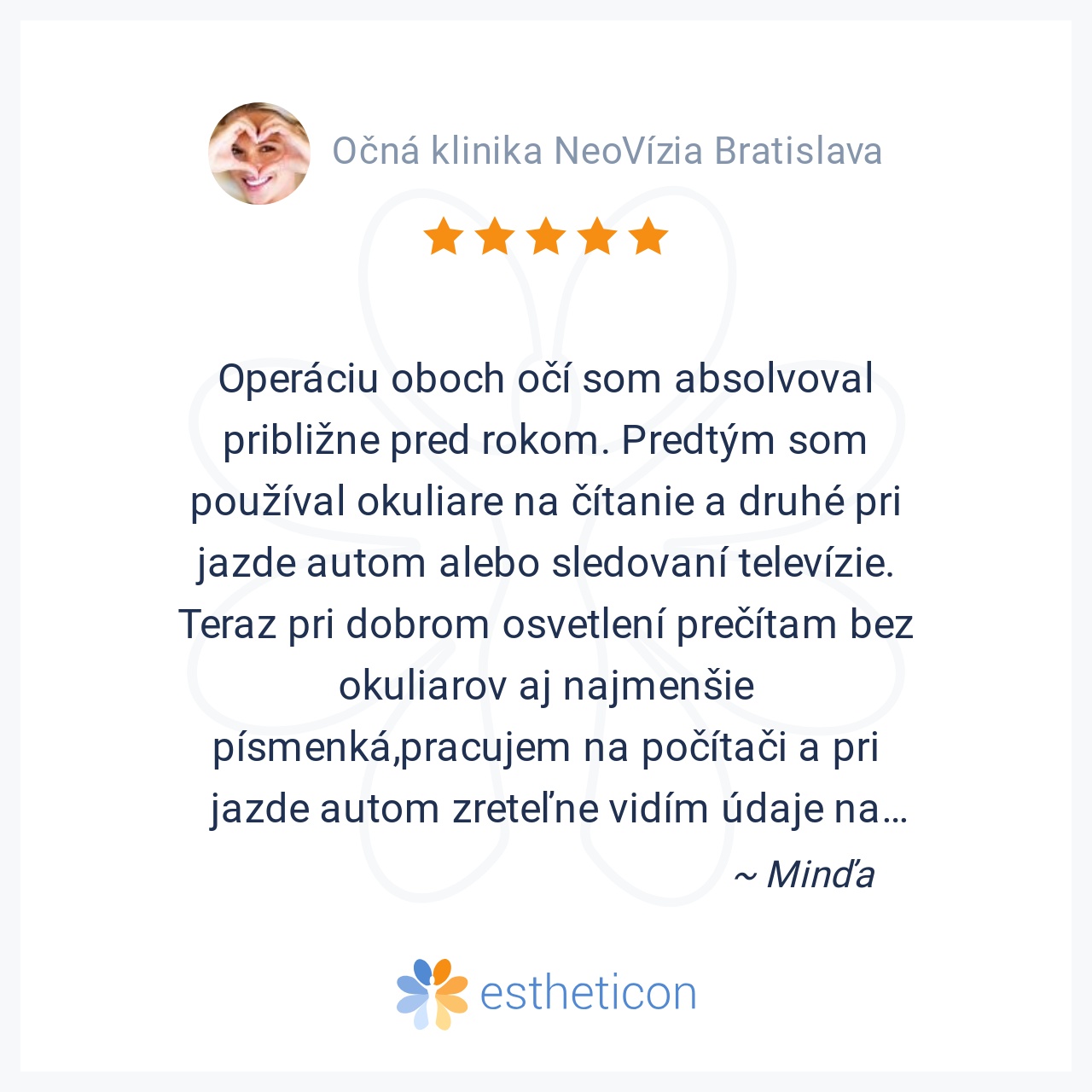 Najskôr som bol aj v inej klinike na konzultáciu, no som rád, že som si nakoniec vybral Neovíziu. Mal som obavu hlavne či má operujúci lekár dostatočnú prax/zručnosť. Ak by som sa mal rozhodnúť teraz znovu či isť na oper... Viac
