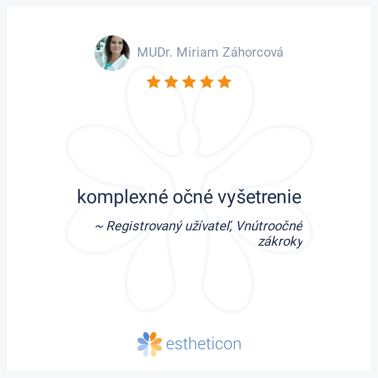 Vrelo odporúčam túto očnú kliniku. Moje poďakovanie patrí celému personálu - od usmievavých recepčných, milých sestričiek a ochotných lekárov. Všetci preukázali mimoriadnu trpezlivosť pri zvládaní množstva pacientov, aj ... Viac