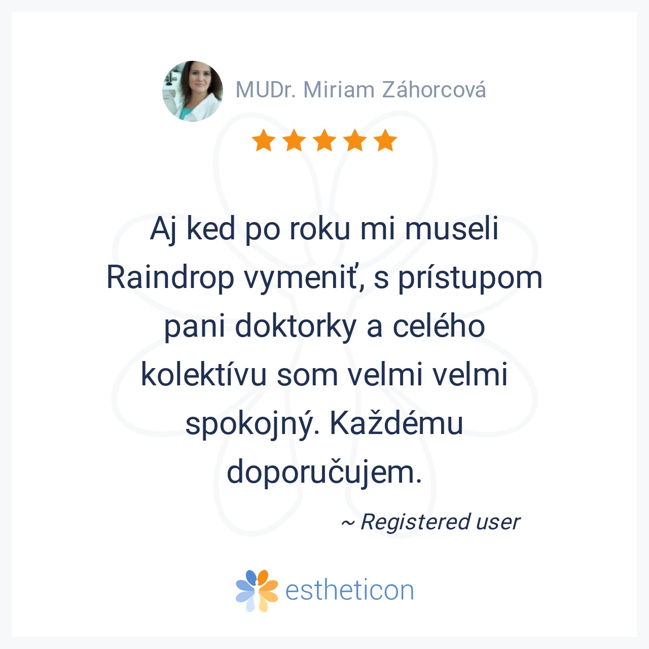 Aj ked po roku mi museli Raindrop vymeniť, s prístupom pani doktorky a celého kolektívu som velmi velmi spokojný. Každému doporučujem.