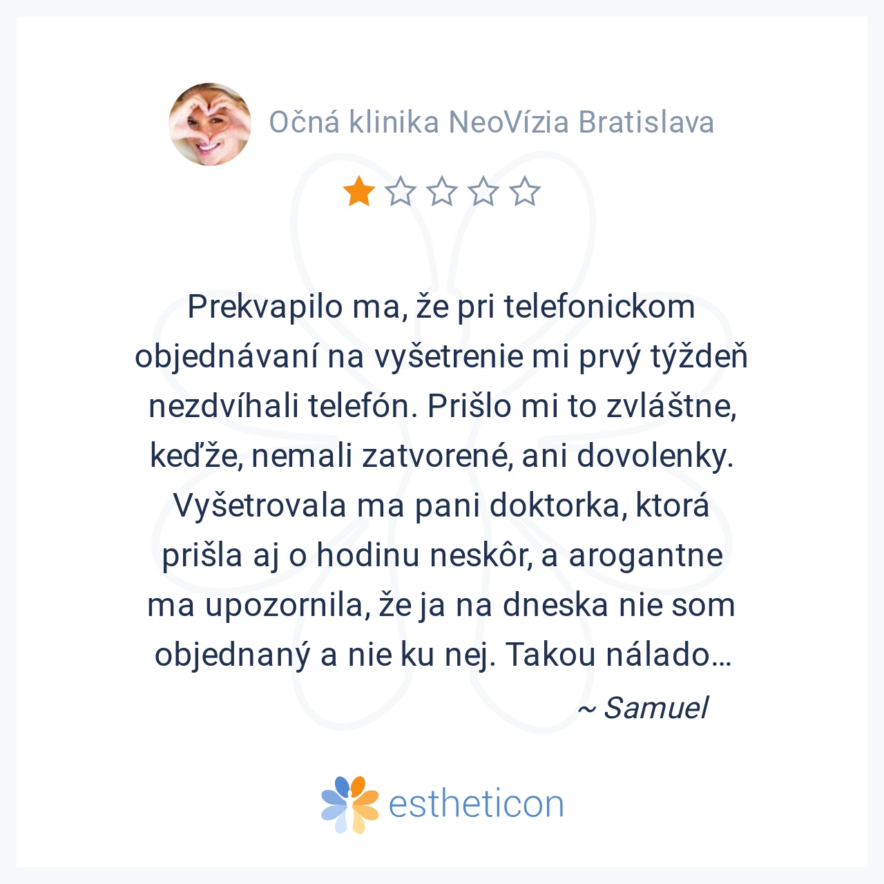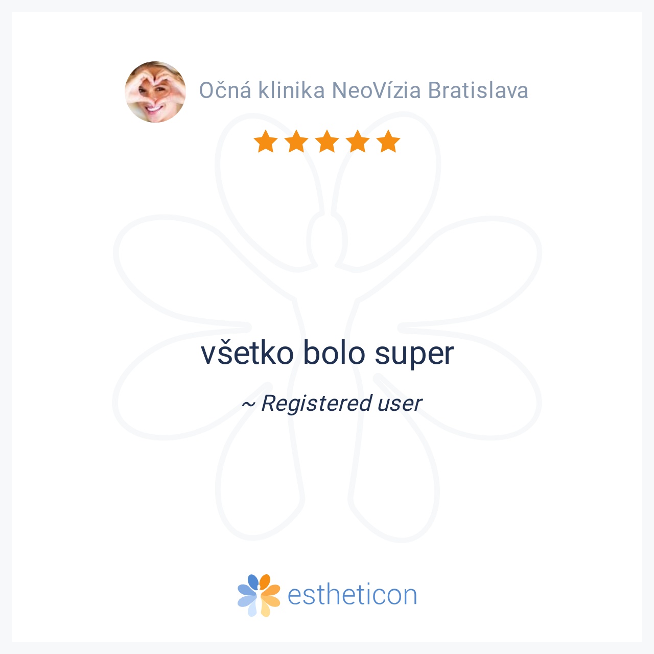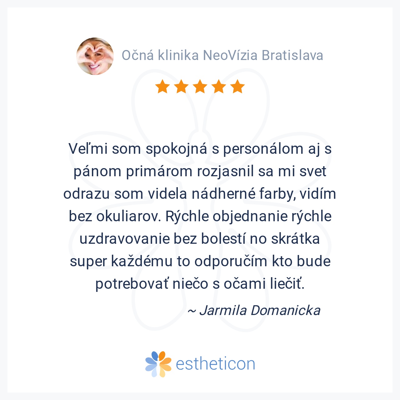 Očnú kliniku Neovízia hodnotím ako najlepšiu na území SR. zmenili mi život a pohľad na svet o 180 stupňov, perfektný kolektív lekárov a sestričiek.