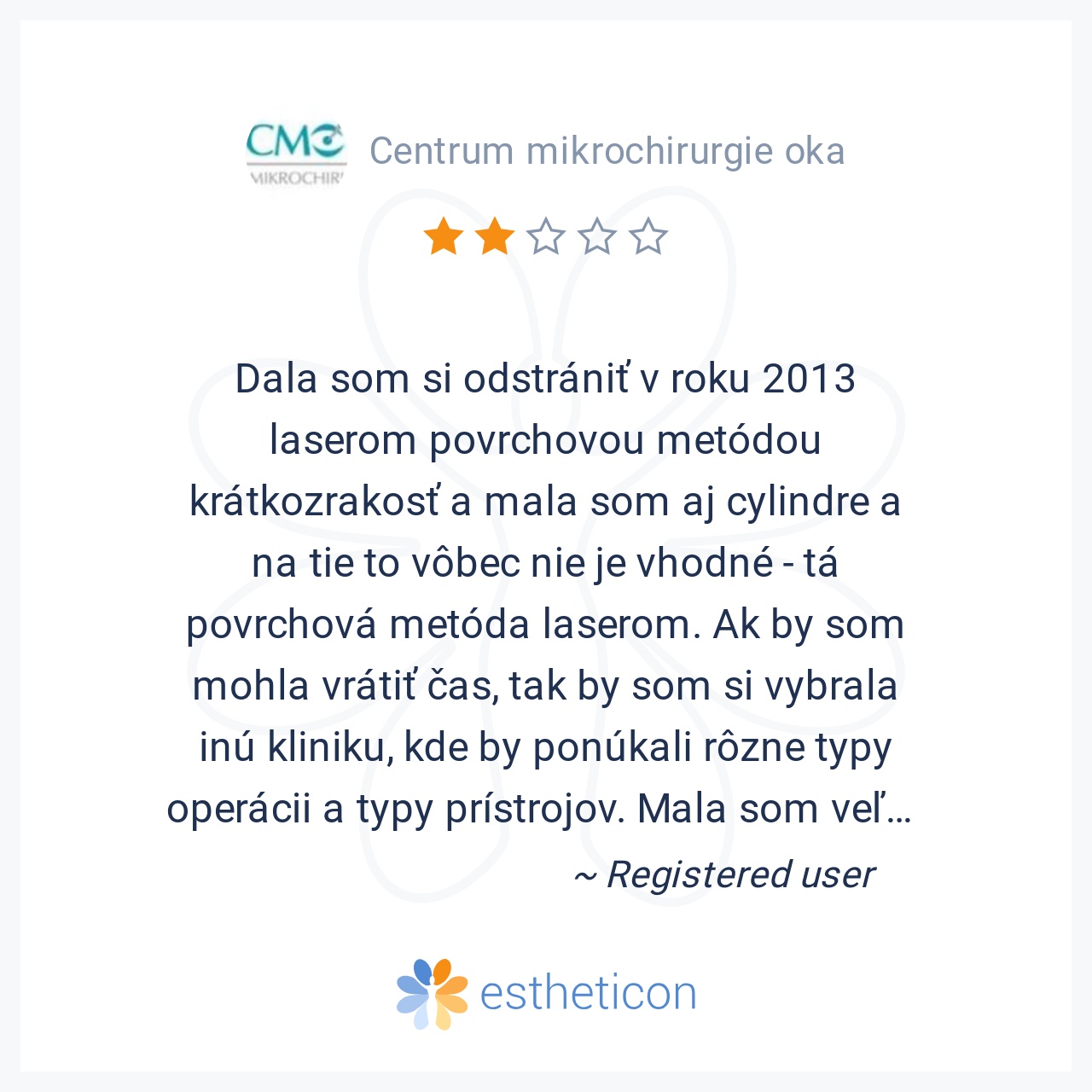 Operovali ma v CMO a som velmi spokojna jednak s vysledkom operacie i celkovo s klinikou. Lasek je najbezpecnejsia metoda, vsetko mi vysvetlili, poradili atd. Lasek je povrchova metoda a kedze robim kontak... Viac