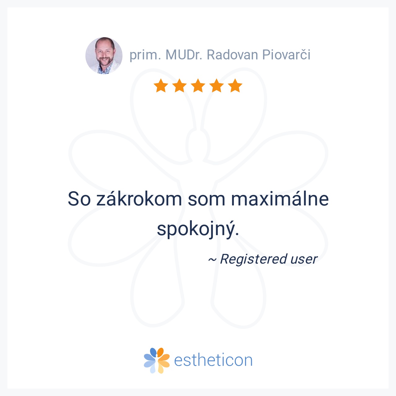 Vyslovujem maximálnu spokojnosť po všetkých stránkach.Ďakujem za profesionálny a ľudský prístup p. MUDr.Michalovi Drmotovi. Má zlaté ruky.