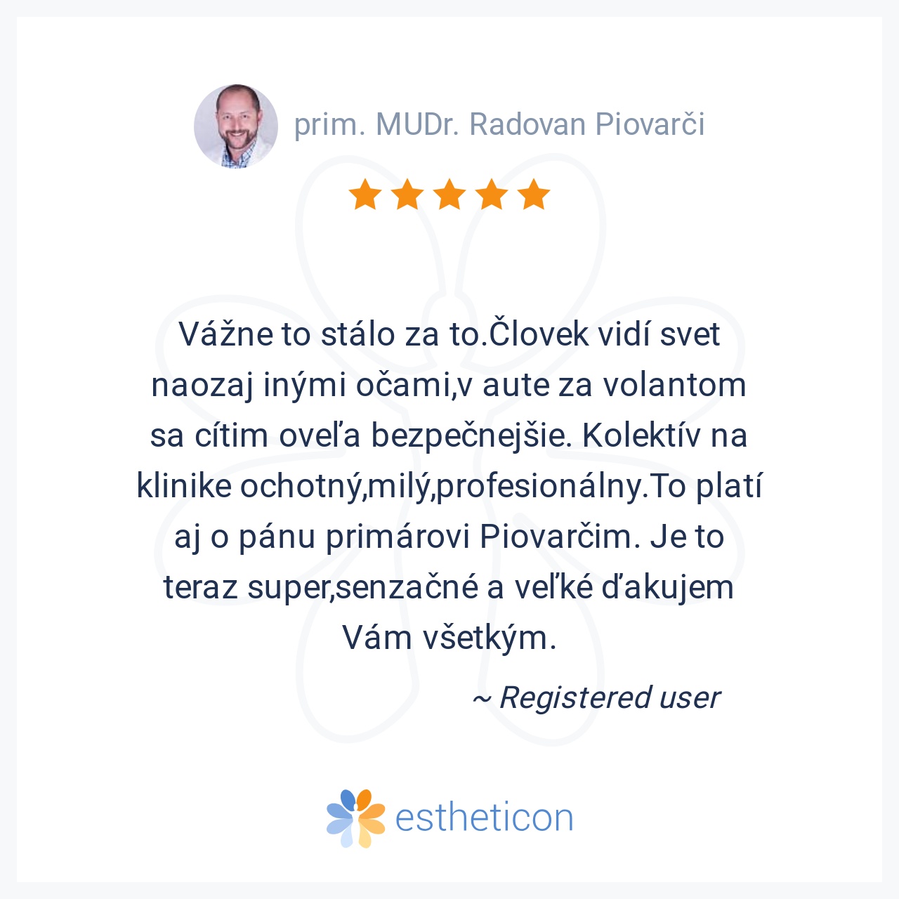 Dakujem za to co ste pre mna urobili, mam iba jedno oko a vdaka Vam opat vidim ako kedysi.