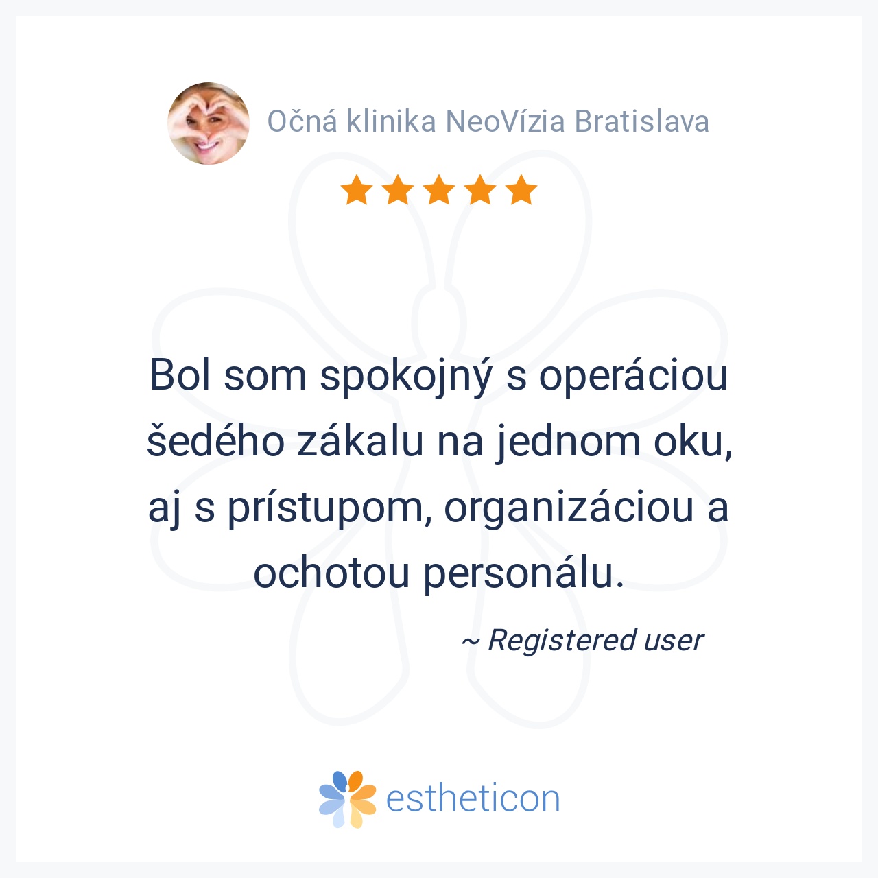 Bol som spokojný s operáciou šedého zákalu na jednom oku, aj s prístupom, organizáciou a ochotou personálu.