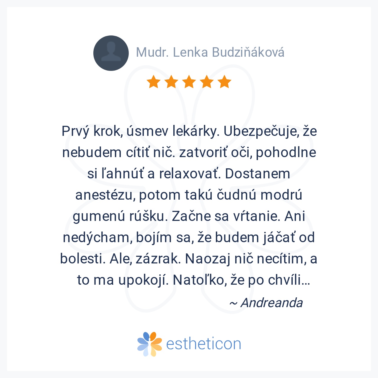 Prvý krok, úsmev lekárky. Ubezpečuje, že nebudem cítiť nič. zatvoriť oči, pohodlne si ľahnúť a relaxovať. Dostanem anestézu, potom takú čudnú modrú gumenú rúšku. Začne sa vŕtanie. Ani nedýcham, bojím sa, že budem jáčať o... Viac